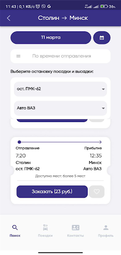 Мы предлагаем заказать билет на маршрутку Столин-Минск-Столин в мобильном приложении. В нем можно отслеживать всю информацию о рейсах, расписании, узнавать новости, связываться с техподдержкой.