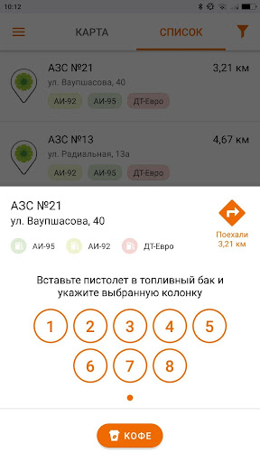 2) выбрать номер топливораздаточной колонки (номер АЗС приложение найдёт само с помощью геолокации).