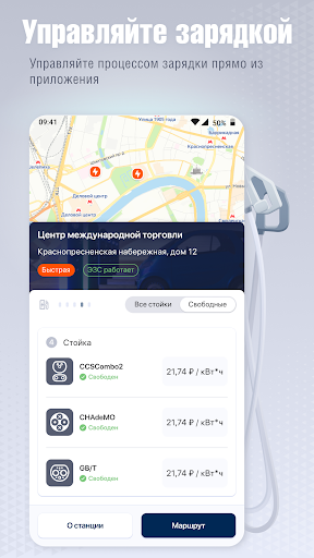 • Найти доступные станции на карте и проложить маршрут к ним.