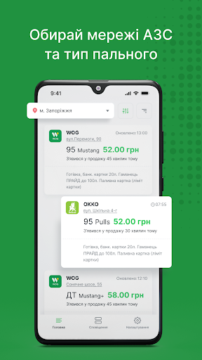 – Відстежуй ціни і наявність пального на заправках у реальному часі