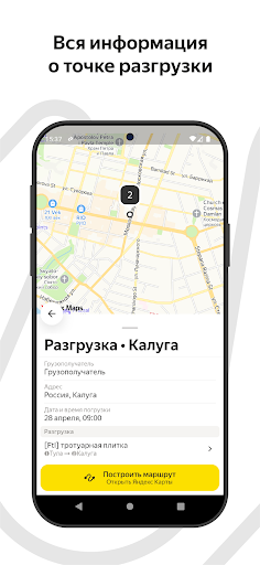 – МАРШРУТИЗАЦИЯ возможность проложить маршрут до точки погрузки/выгрузки