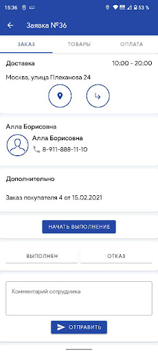 Приложение предназначено для получения маршрутных листов и заказов-нарядов, отслеживание очередности заявок, передачи информации о статусах заказа, просмотра контактных данных клиентов. Приложение строит оптимальную маршрут передвижения и отслеживает траекторию перемещения.
