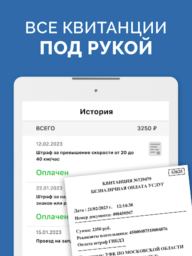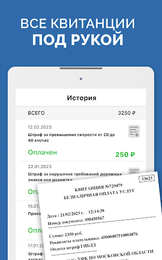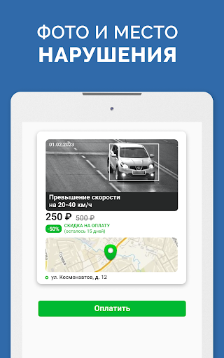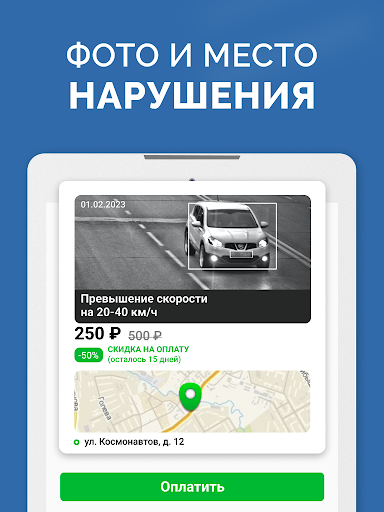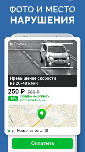 🔔 Приложение оперативно уведомит, если Вы получите новое нарушение ПДД и поможет его оплатить онлайн со скидкой 50%.