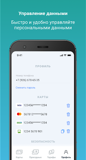 • Добавлять банковские и транспортные карты в личный кабинет пассажира
