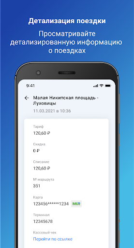 • Просматривать детализацию информации о транспортной карте
