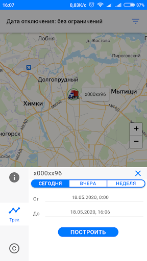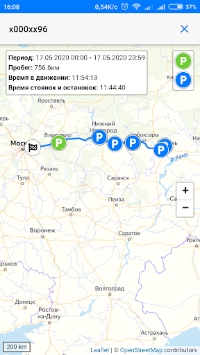 Вывода трека (маршрута движения) ТС на карте за выбранный период времени с указанием мест остановок/стоянок;
