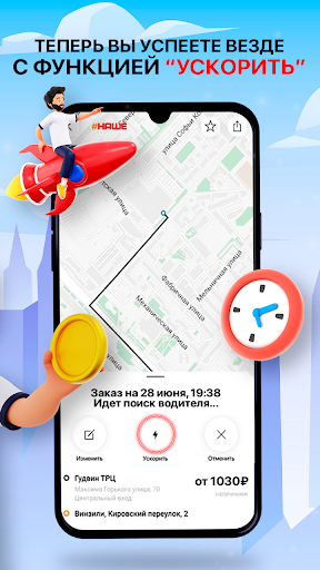 #НАШЕ знает, где сейчас едет каждый водитель, что происходит на дорогах и как лучше построить маршрут. Специальные алгоритмы обрабатывают все эти данные, поэтому машина приезжает быстро, у водителей всегда есть заказы, а цены остаются низкими.