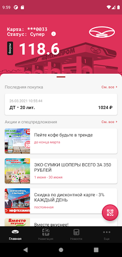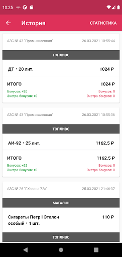 – следить за состоянием вашего бонусного счета и видеть всю историю покупок на АЗС;