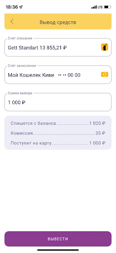 Вывод возможен на любые банковские карты и QIWI кошелек в пределах установленных вашим таксопарком лимитов.