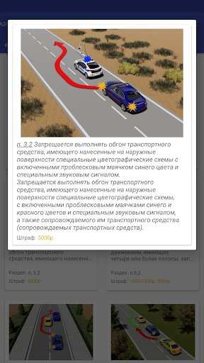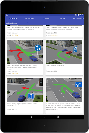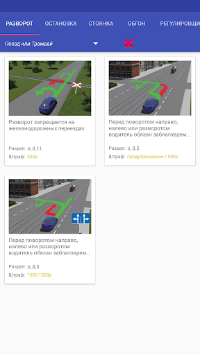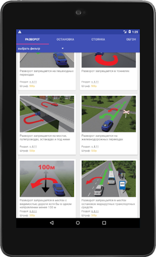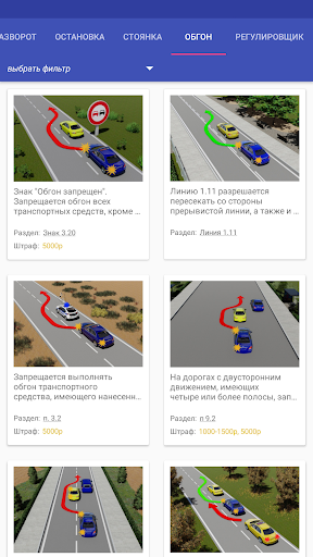 Для быстрого поиска информация поделена на разделы и задействован фильтр. А для облегчения понимания каждый пункт отображен на картинке с соответствующей дорожной ситуацией. Не составит особого труда пользоваться приложением.