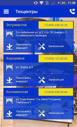 3 филиала в г. Москве: “Энтузиастов”, “Коломенское” и “Хорошевка”: