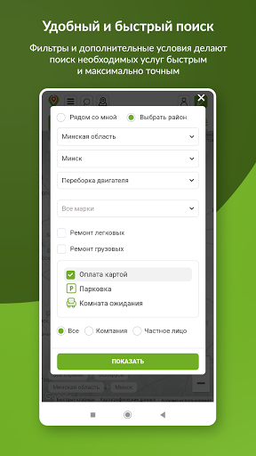 – Найдите удобный ближайший к вам сервис в пару кликов.