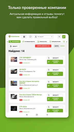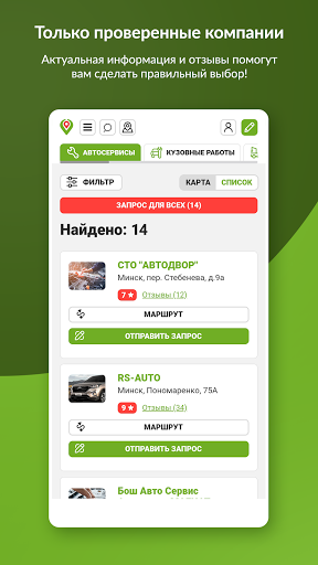 – Вам не надо обзванивать автосервисы рядом. Просто отправьте запрос всем подходящим и ждите предложений!