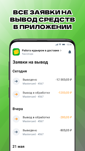 Кроме регистрации в парке с помощью нашего приложения также производится вывод денег с баланса Доставки
