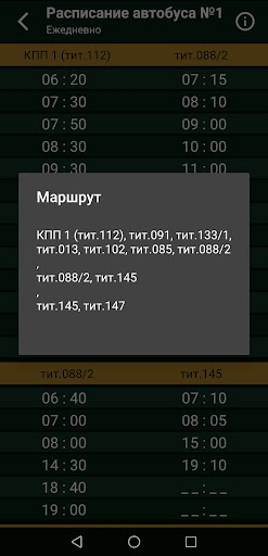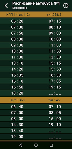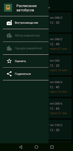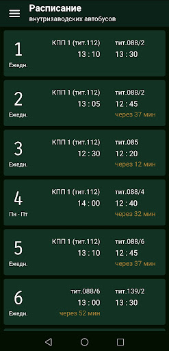 Расписание автобусов на предприятии. Это приложение поможет вам не опоздать на автобус передвигаясь по территории предприятия.