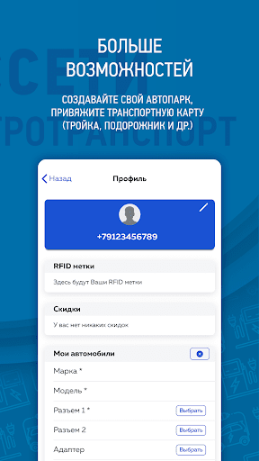 – Привязка транспортных карт (Тройка, Подорожник и т.п.) для удобства запуска и останова зарядных сессий;
