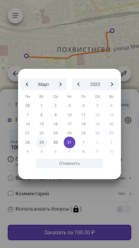 Приложение для быстрого и удобного заказа такси. Среднее время подачи машины от 2 до 5 минут.
