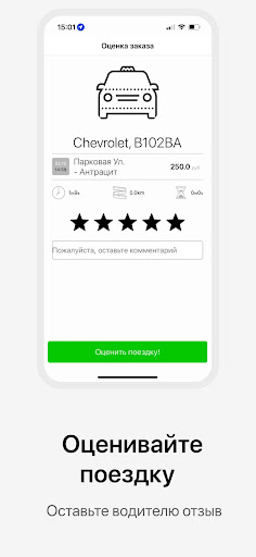ОЦЕНКА ПОЕЗДОК – оцените прошедшую поездку, водителя и оставьте нам комментарий прямо в приложении