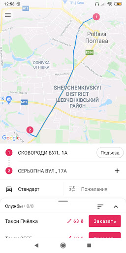 Приложение позволяет выбрать оптимальную службу для поездок по городу Полтава и ближайшим населенным пунктам.