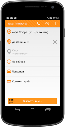 Теперь в такси “Пятерочка” заказать такси стало намного проще-без звонка оператору и долгого ожидания на линии.Где бы вы не находились-дома,на работе или посреди шумной вечеринки.Это очень просто!Вам нужно лишь открыть приложение,которое автоматически определит Ваше местоположение,указать адрес,куда будете ехать и нажать на кнопку “Заказать” такси.