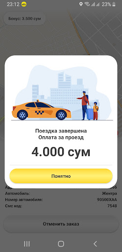 Марка и номер автомобилья. После завершения поездки ознакомьтесь итоговой стоимостью.