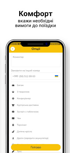 * вибір тарифу та класу автомобіля