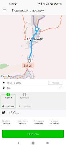 Заказ такси в городе Кадамжай с помощью удобного и простого в использовании мобильного приложения для вызова такси.