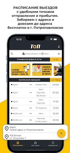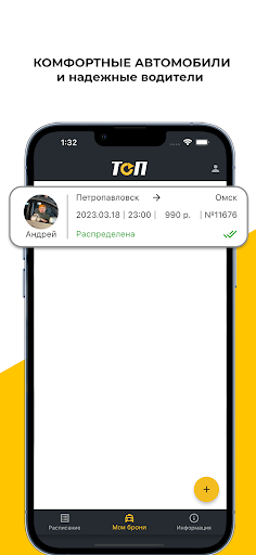 Приложение такси «ТОП» – бесплатный сервис бронирования поездок между городами России и Казахстана.
