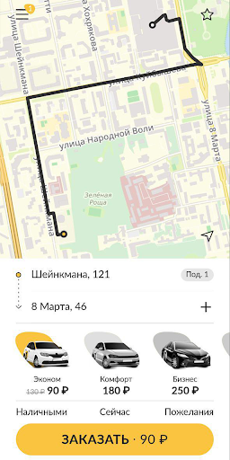 После ввода маршрута, Вы видите стоимость для каждого класса машины и можете легко переключаться между ними.