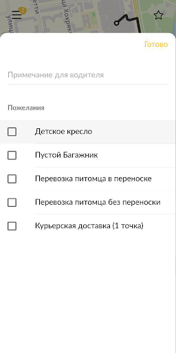 Нажав на звездочку в правом верхнем углу, Вы можете добавить маршрут в “Избранные”, и в дальнейшем Вам больше никогда не придется вводить его вручную – просто нажмите на Звездочку и выберите нужный маршрут. При этом, сохранятся даже комментарии для водителя и выбранные дополнительные услуги, например, “Детское кресло”.