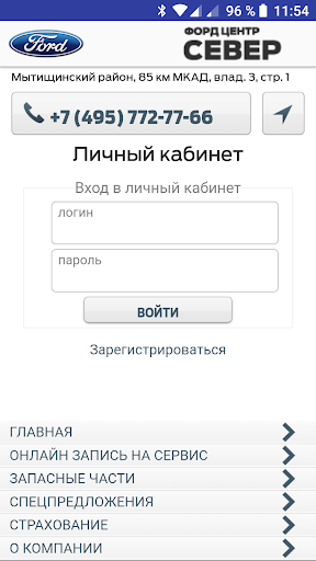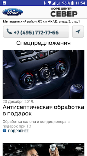 Приложение для клиентов ФОРД ЦЕНТР СЕВЕР, официального дилера Ford в РФ.