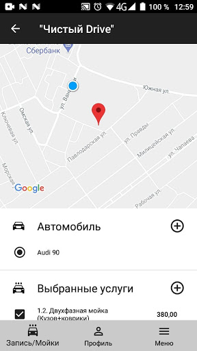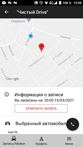 – Видеть все доступные места для записи автомойку;