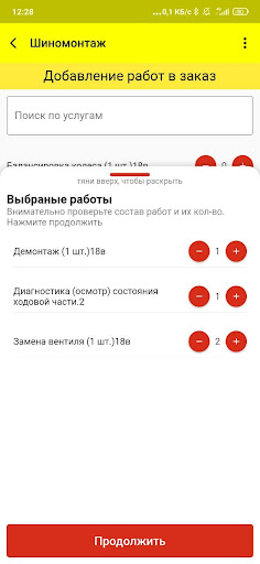 Приложение для контрагентов и сотрудников Шинной Лиги позволяющее создавать новые заказ-наряды на шиномонтаж и мойку в системе учёта Шинной Лиги для легковых автомобилей