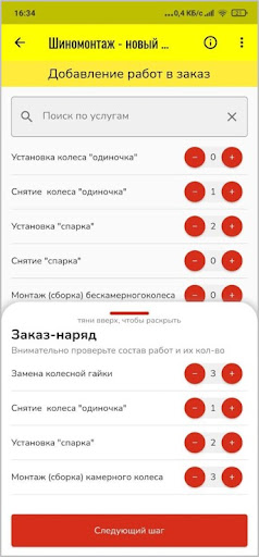 Приложение для контрагентов и сотрудников Шинной Лиги позволяющее создавать новые заказ-наряды на шиномонтаж, мойку и парковку в системе учёта Шинной Лиги