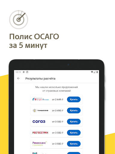 – Оформление е-ОСАГО за 5 минут. Выберите понравившееся вам предложение из множества и получите страховой полис на электронную почту.
