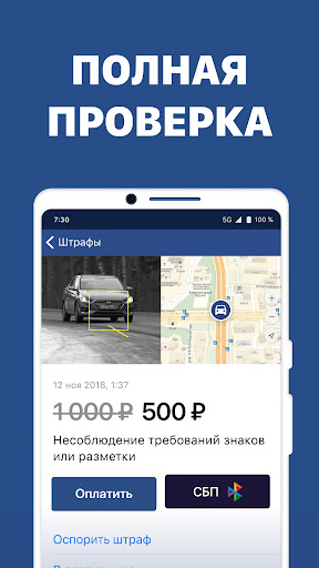 По каждому штрафу покажем полную информацию: фото, место на карте, дату и время нарушения, статью ПДД, а также номер постановления и его дату.