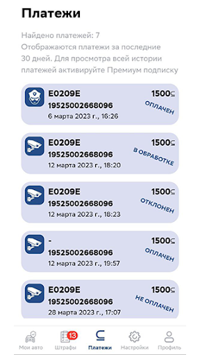 • Список оплаченных и неоплаченных штрафов, который всегда доступен в приложении