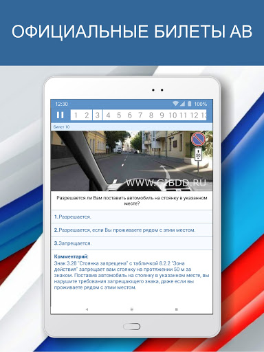 Посредством этого приложения можно пройти виртуальный экзамен. Оно позволяет выбрать три режима обучения. Первый тест предлагает на ваш выбор абсолютно все билеты. Это хороший способ начать подготовку к сдаче экзамена на права. В нем вы выбираете вопрос, а затем нажимаете на верный по вашему мнению ответ. Дальше же тренажер предложит перейти в режим случайного билета. В нём вам предоставят один из сорока имеющихся здесь вопросов с вариантами ответа — останется только выбрать правильный. Наконец, существует здесь и режим экзамена — в этом случае вам предоставят 20 случайных вопросов, а при совершении ошибки придется решить ещё 5 вопросов.