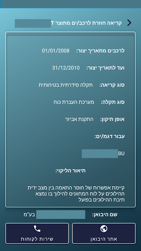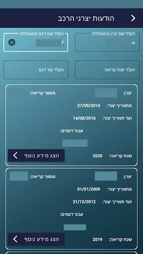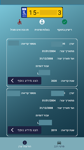 החיפוש מתבצע לפי מספר הרישוי והמידע המוצג בה קשור באופן ישיר למידע הזמין והנוכחי במשרד התחבורה.