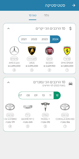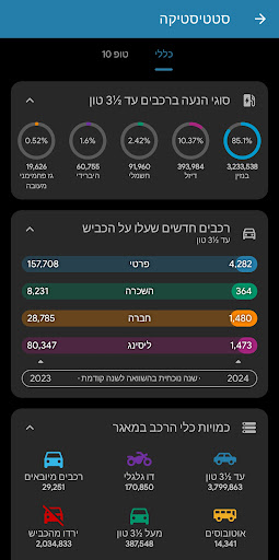 ∙ סטטיסטיקת השוואת רכבים חדשים שעלו על הכביש ביחס לשנה שעברה ועוד