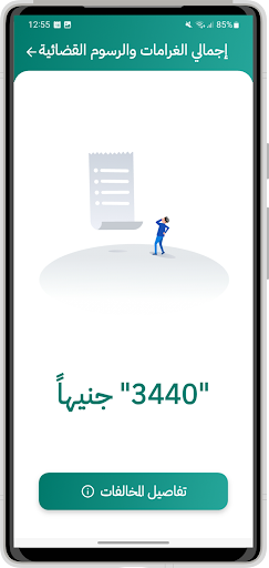 تفاصيل المخالفات: من خلال إدخال الرقم القومي لمالك السيارة، يمكنك معرفة تفاصيل المخالفة مثل التاريخ، الوقت، المكان، وقيمة الرسوم القضائية.