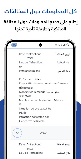 كما يمكنك التطبيق من الإطلاع على جميع مخالفات المرصودة بواسطة الرادارات أو المسجلة من طرف الأمن.