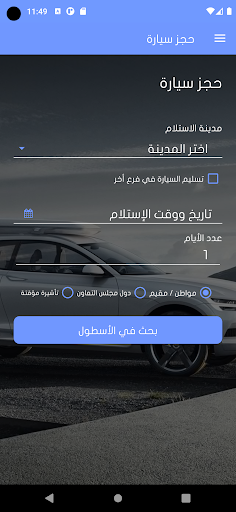 يساعد هذا التطبيق عملائنا على حجز السيارات مباشرة من خلال التطبيق بغض النظر عن مواقعهم ، يمكنك حجز السيارات من فروعنا العديدة في المملكة العربية السعودية
