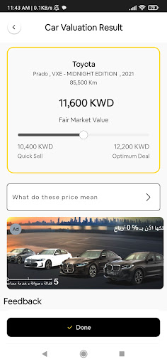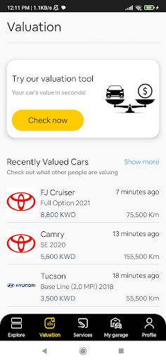 The first specialized app in the Kuwaiti Auto market that enables its users to get an instant valuation for their cars