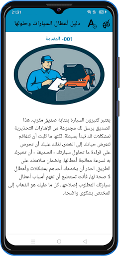 لاحاجة لك اليوم لميكانيكي ، فبواسطة تطبيق دليل أعطال السيارات وحلولها ​يمكنك الاطلاع على العطل الذي تواجهه مرفقا بالحلول اللازم إتخادها، يقوم بمساعدتكم و تسهيل معرفة كل المشاكل و الاسباب التي تسبب لكم اعطال قد تصادفونها مع سياراتكم مع وجود الحلول و تعليم كيفية تصليح كل الاعطال و اعطاء تنبيهات ونصائح يجب مراعاتها للتفادي الخسائر.
