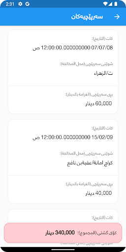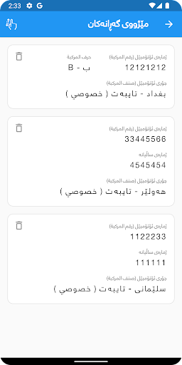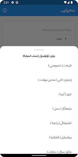 ئەم بەرنامەیە ڕوکارێکی سادەی هەیە دەتوانیت زانیاری سەرپێچی بۆ ئەم جۆرە ئۆتۆمبێلانە وەربگریت (تايبهت ( خصوصي ) – فحص مؤقت – کرێ ( أجرة ) – بارهەڵگر ( حمل ) – کشتوکاڵ ( زراعية ) – بیناسازی ( أنشائية ) – ماتۆڕ سکل ( دراجات ) – حكومي ) بۆ بۆ هەمو پاریزگاکانی کوردستان و عێراق.