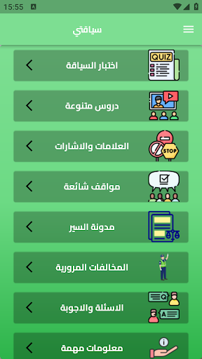 1. الاختبار النظري للحصول على رخصة القيادة: يوفر التطبيق اختبارًا شاملاً لقواعد المرور والمعرفة اللازمة لاجتياز الاختبار النظري.