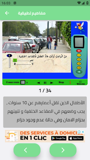 3. قواعد المرور (كود الطريق): يشرح التطبيق قواعد المرور الصادرة عن السلطات المغربية، بما في ذلك قواعد التجاوز والالتزام، وأولوية التجاوز والتوقف والتوقف، وكيفية التعامل مع حوادث المرور.