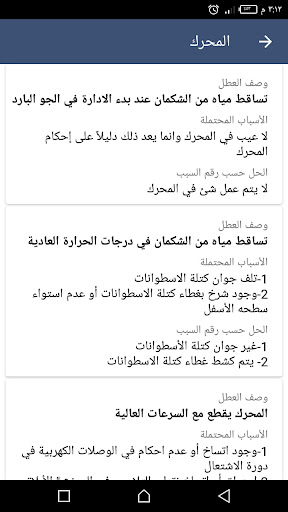 يوجد بالتطبيق ايضا موسوعة اعطال السيارات وحلولها في محاوله لتسهيل تشخيص الاعطال وحلها.