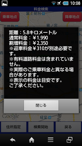 7.料金検索ではGoogle Mapsを利用してルートを割り出していますので実際のルートと異なる場合があります。又、概算料金には通行料・迎車料は含まれません。